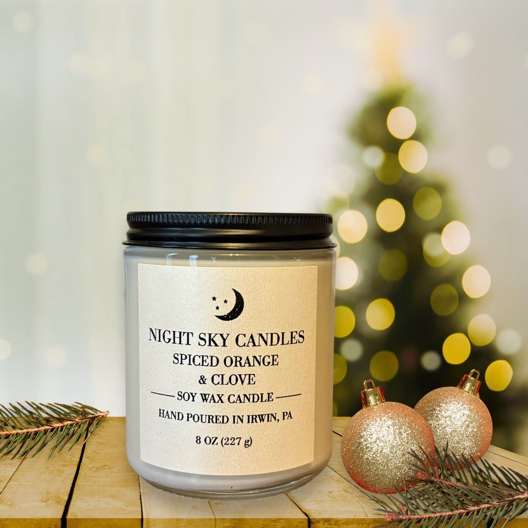 SPICED ORANGE & CLOVE is a spicy twist on a traditional holiday citrus scent. Fresh cracked peppercorn combined with orange peel and mandarin and rounded out with a base of vanilla and tonka bean with a hint of clove.